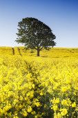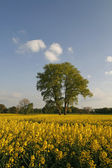 Kasztanowiec (Aesculus hippocastanum) z pola rzepaku w Bad Iburg w maju