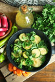 Zdjęcie "Plastry cukinii w patelni na stole, zbliżenie" może być wykorzystywane do celów osobistych i komercyjnych zgodnie z warunkami zakupionej licencji Royalty-free. Obraz jest dostępny do pobrania w jakości wysokiej rozdzielczości do 5760x3840.