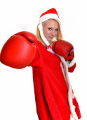 Santa kapelusz kobieta Boże Narodzenie obchodzi sobie Rękawice bokserskie.