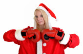 Santa kapelusz kobieta Boże Narodzenie obchodzi sobie Rękawice bokserskie.