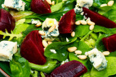 Sałatka z kozim serem, orzechami, warzywa i zioła