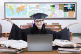 Podekscytowany ucznia z ukończenia suknia w klasie