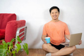 Azjatycki człowiek podłączyć Dslr na Pc Pobierz za darmo obrazki na laptopie