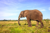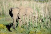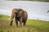 Słoń afrykański wypasający się na roślinności w rzece Chobe w Botswanie