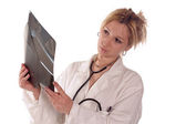 lekarz z wyniki mri na białym tle na biały bakground