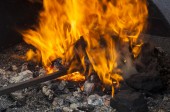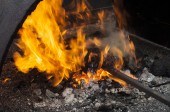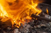 Staromodny kowala pieca z węglach. Żar i płomień smith's Forge. Ogrzewany bugle z czerwonych węgli.