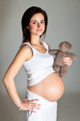 Zdjęcie "brunetka kobieta w ciąży z misiem na czarnym tle" może być wykorzystywane do celów osobistych i komercyjnych zgodnie z warunkami zakupionej licencji Royalty-free. Obraz jest dostępny do pobrania w jakości wysokiej rozdzielczości do 5760x3840.