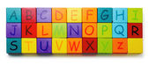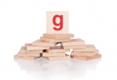 dziewczyna w zabawki gry drukowanymi literami ze ścieżką przycinającą