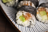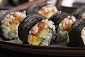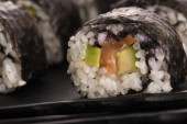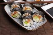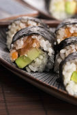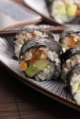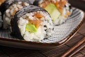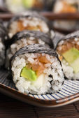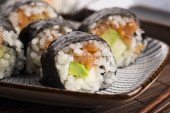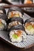 Zdjęcie "Sushi - łosoś rolkach podawane na talerzu" może być wykorzystywane do celów osobistych i komercyjnych zgodnie z warunkami zakupionej licencji Royalty-free. Obraz jest dostępny do pobrania w jakości wysokiej rozdzielczości do 5760x3840.