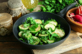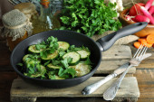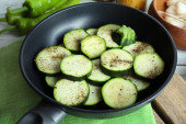 Zdjęcie "Plastry cukinii w patelni na tabela, widok z góry" może być wykorzystywane do celów osobistych i komercyjnych zgodnie z warunkami zakupionej licencji Royalty-free. Obraz jest dostępny do pobrania w jakości wysokiej rozdzielczości do 5760x3840.