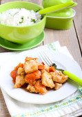 kurczaka lub wieprzowiny z papryki i zioła i przyprawy na ryżu