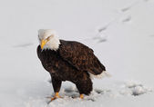 Portret z dorosły Bielik (Haliaeetus leucocephalus) na śniegu