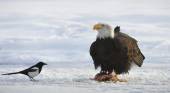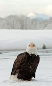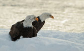 Portret z dorosły Bielik (Haliaeetus leucocephalus) na śniegu