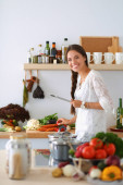 Młoda kobieta stojąca przy piecu w kuchni