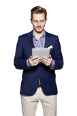 Zdjęcie "Martwi się człowieka za pomocą cyfrowego tabletu " może być wykorzystywane do celów osobistych i komercyjnych zgodnie z warunkami zakupionej licencji Royalty-free. Obraz jest dostępny do pobrania w jakości wysokiej rozdzielczości do 5760x3840.