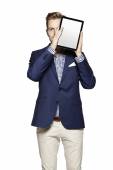 Zdjęcie "Martwi się człowieka za pomocą cyfrowego tabletu " może być wykorzystywane do celów osobistych i komercyjnych zgodnie z warunkami zakupionej licencji Royalty-free. Obraz jest dostępny do pobrania w jakości wysokiej rozdzielczości do 5760x3840.