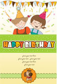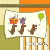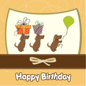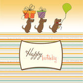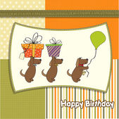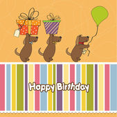 trzy psy, które oferują duży prezent. kartka urodzinowa