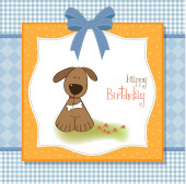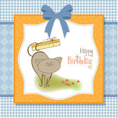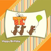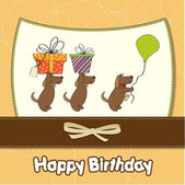 trzy psy, które oferują duży prezent. kartka urodzinowa