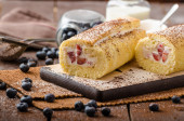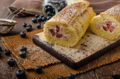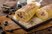 Zdjęcie "Gąbka rolki nadziewane kremem truskawkowym" może być wykorzystywane do celów osobistych i komercyjnych zgodnie z warunkami zakupionej licencji Royalty-free. Obraz jest dostępny do pobrania w jakości wysokiej rozdzielczości do 5760x3840.