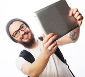 Zdjęcie "Szczęśliwa młoda brodaty mężczyzna" może być wykorzystywane do celów osobistych i komercyjnych zgodnie z warunkami zakupionej licencji Royalty-free. Obraz jest dostępny do pobrania w jakości wysokiej rozdzielczości do 5760x3840.
