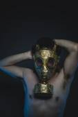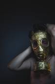 depresja i niebezpieczeństwo człowiek z złota maska gazowa