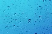 Woda kropla niebieski niebo na tle lustra szklane.