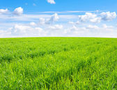 pola i białe chmury