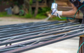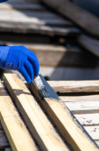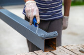 Zdjęcie "Człowiek malujący metalowe słupy. Wybiórcze skupienie. charakter." może być wykorzystywane do celów osobistych i komercyjnych zgodnie z warunkami zakupionej licencji Royalty-free. Obraz jest dostępny do pobrania w jakości wysokiej rozdzielczości do 5760x3840.