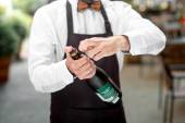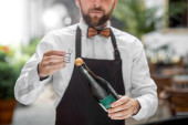 Zdjęcie "Barman otwarcia butelki z winem musującym" może być wykorzystywane do celów osobistych i komercyjnych zgodnie z warunkami zakupionej licencji Royalty-free. Obraz jest dostępny do pobrania w jakości wysokiej rozdzielczości do 5760x3840.