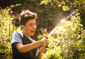 Zdjęcie " chłopiec z pojenia rura na zielonym tle ogród" może być wykorzystywane do celów osobistych i komercyjnych zgodnie z warunkami zakupionej licencji Royalty-free. Obraz jest dostępny do pobrania w jakości wysokiej rozdzielczości do 5760x3840.