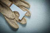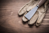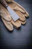 Zdjęcie "Skórzane rękawice ochronne i szpachlą" może być wykorzystywane do celów osobistych i komercyjnych zgodnie z warunkami zakupionej licencji Royalty-free. Obraz jest dostępny do pobrania w jakości wysokiej rozdzielczości do 5760x3840.