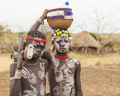 Kobieta z afrykańskiego plemienia Mursi z jej dzieckiem, Etiopia