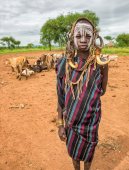 Zdjęcie "Kobieta z afrykańskiego plemienia Mursi z jej dzieckiem, Etiopia" może być wykorzystywane do celów osobistych i komercyjnych zgodnie z warunkami zakupionej licencji Royalty-free. Obraz jest dostępny do pobrania w jakości wysokiej rozdzielczości do 5760x3840.