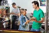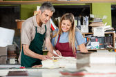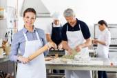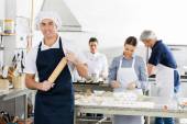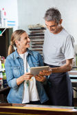 Szczęśliwy pracowników pracujących razem w fabryce papieru