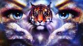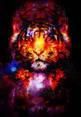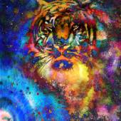 Zdjęcie "Malowanie tygrysa na kolor tła kosmicznego. ." może być wykorzystywane do celów osobistych i komercyjnych zgodnie z warunkami zakupionej licencji Royalty-free. Obraz jest dostępny do pobrania w jakości wysokiej rozdzielczości do 5760x3840.