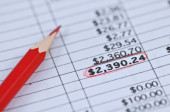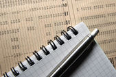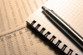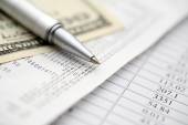 makro stalowe pióro na wydruku sprawozdania finansowego.