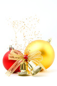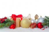 piękne czerwone bombki i stożki na białym tle