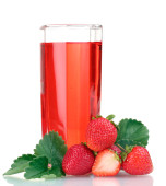 świeże truskawki i sok szkło na białym tle