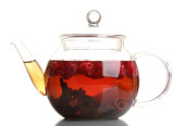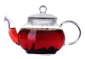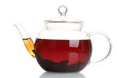 Szklany czajnik z czarną herbatą izolowane na białym