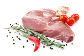 Surowe mięso i warzywa na białym tle na Zielone Świątki?