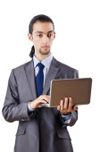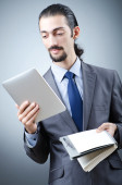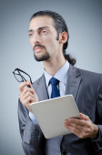 biznesmen, pracując na komputerze typu tablet