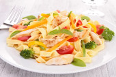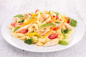 Zdjęcie "Sałatka makaronowa z kurczakiem i warzywami" może być wykorzystywane do celów osobistych i komercyjnych zgodnie z warunkami zakupionej licencji Royalty-free. Obraz jest dostępny do pobrania w jakości wysokiej rozdzielczości do 5760x3840.