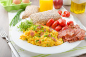 Jajecznica z pieczonymi pomidorami i szczypiorek, panini jajecznica z pieczonych pomidorów