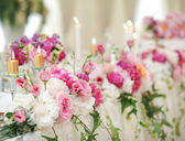 Dekoracje ślubne na stole. Kompozycje kwiatowe i dekoracji. Układ kwiaty różowe i białe w restauracji na luksusowy ślub zdarzenie