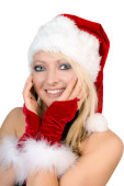 piękne i sexy blond kobieta sobie santa klauzuli kostium na białym tle