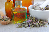 Świeże i suche kwiaty lawenda i olejek lawendowy