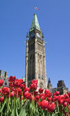 czerwone tulipany kwitną na festiwalu tulipan w Ottawie.