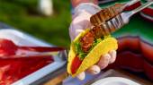 Zdjęcie "Szef kuchni Dokonywanie tacos w kawiarni ulicy" może być wykorzystywane do celów osobistych i komercyjnych zgodnie z warunkami zakupionej licencji Royalty-free. Obraz jest dostępny do pobrania w jakości wysokiej rozdzielczości do 5760x3840.
