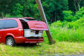 Zdjęcie "Srebrny sedan przewrócony nad czarnym pojazdem są splątane po kolizji na cichej, zalesionej drodze." może być wykorzystywane do celów osobistych i komercyjnych zgodnie z warunkami zakupionej licencji Royalty-free. Obraz jest dostępny do pobrania w jakości wysokiej rozdzielczości do 5760x3840.