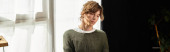 Młody Azjata w modnym stroju relaksuje się w parku otoczony tętniącymi życiem kwiatami, sztandar